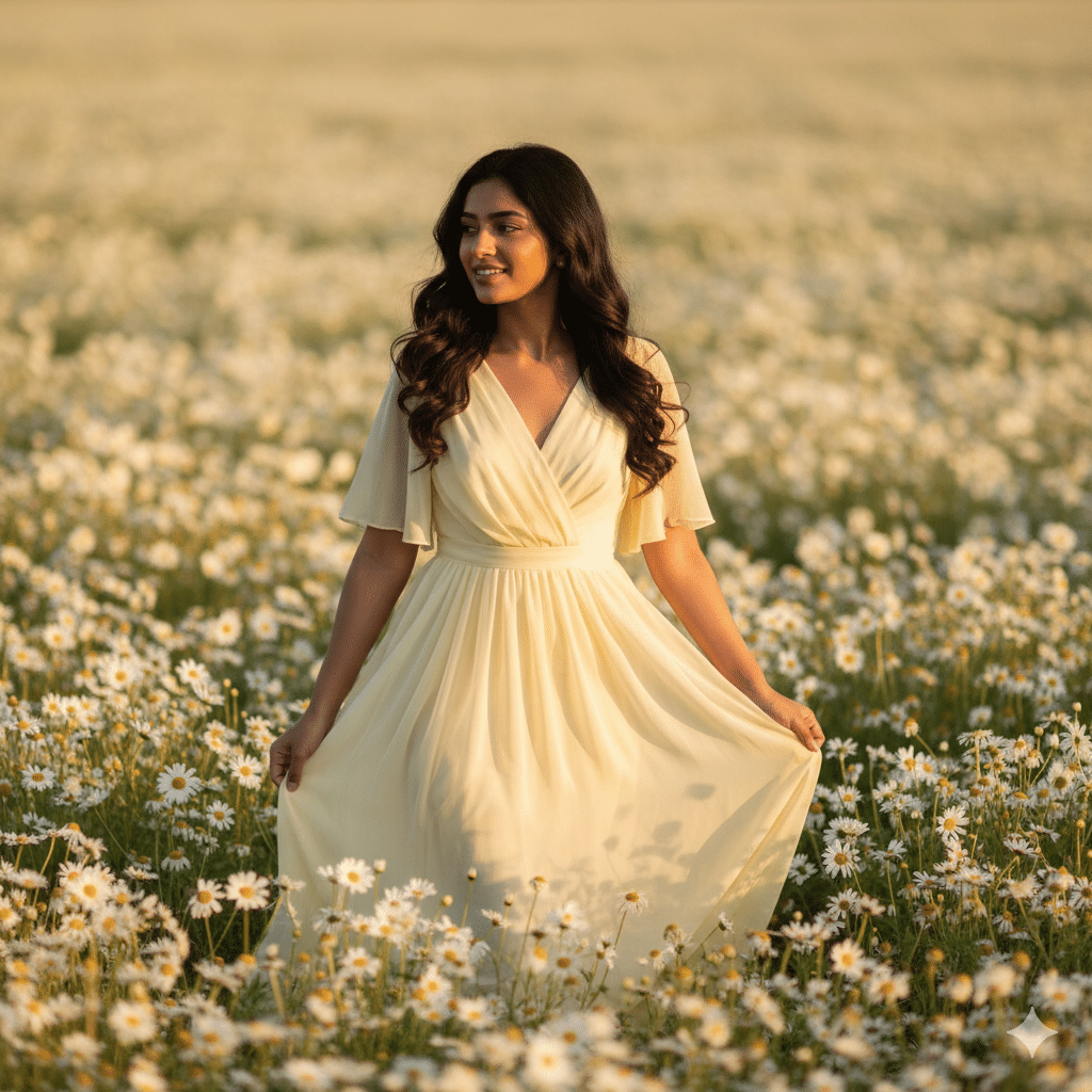 Soft pastel daisy field photos are more than just images — they represent peace, elegance, and modern Indian femininity. With Google Gemini AI and thoughtfully written prompts, you can create professional-quality cinematic portraits from anywhere.